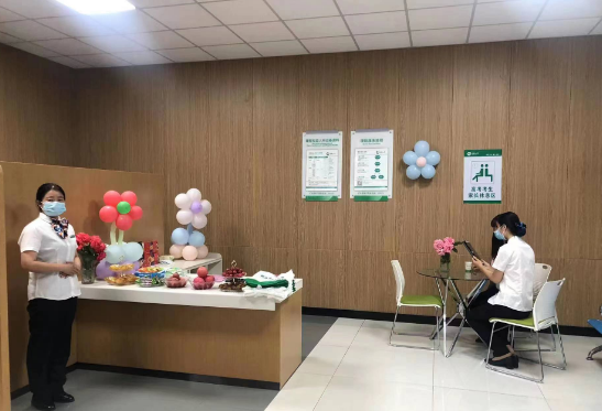 高考期间,全省柜面均在网点内的安静区域开辟家长伴考专用休息区,满足广大客户可坐、可立、可走动的休息需要。同时,结合实际,免费提供饮品、高考文具、应急防暑药品、一次性口罩等伴考物资,用专属场景为客户提供有品质的伴考保障,每一位客户的到来,都会热情接待。