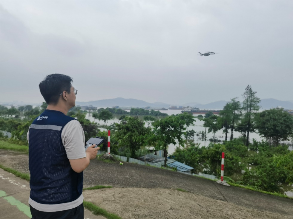 连日来,广东全省各地出现持续强降水天气。4月22日,中国太保产险广东分公司接到何先生报案,他承包的鱼塘被洪水淹没,养殖的水产损失惨重。中国太保产险广东分公司农险理赔员陈南、杨逸伦立即前往查勘,现场一片茫茫浊浪,何先生的鱼塘已全部淹没在水中,无法靠近,查勘员熟练地操纵无人机航拍测亩,很快确认了受损位置和面积,现场确定了损失情况。