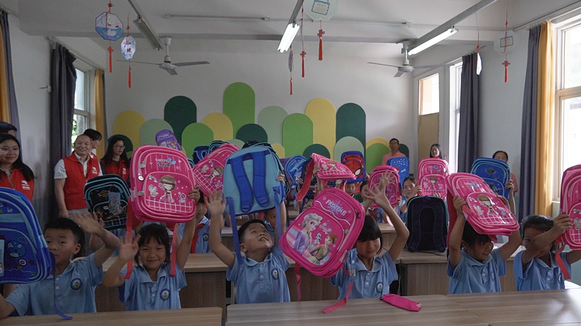 “即将迎来六一儿童节啦,这是你们的节日,今天我们带来了图书、学习用品、体育用品,希望你们尽可能的接受多元化的教育,尽可能的奔跑!”活动现场,志愿者们给每一位孩子发了新书包,拿到手里后,张倪菲(化名)细细打量着,抚摸着,眼中满是欢喜。“喜欢吗?”一名志愿者蹲下去问她。“嗯嗯,喜欢,这是我的第一个书包。”