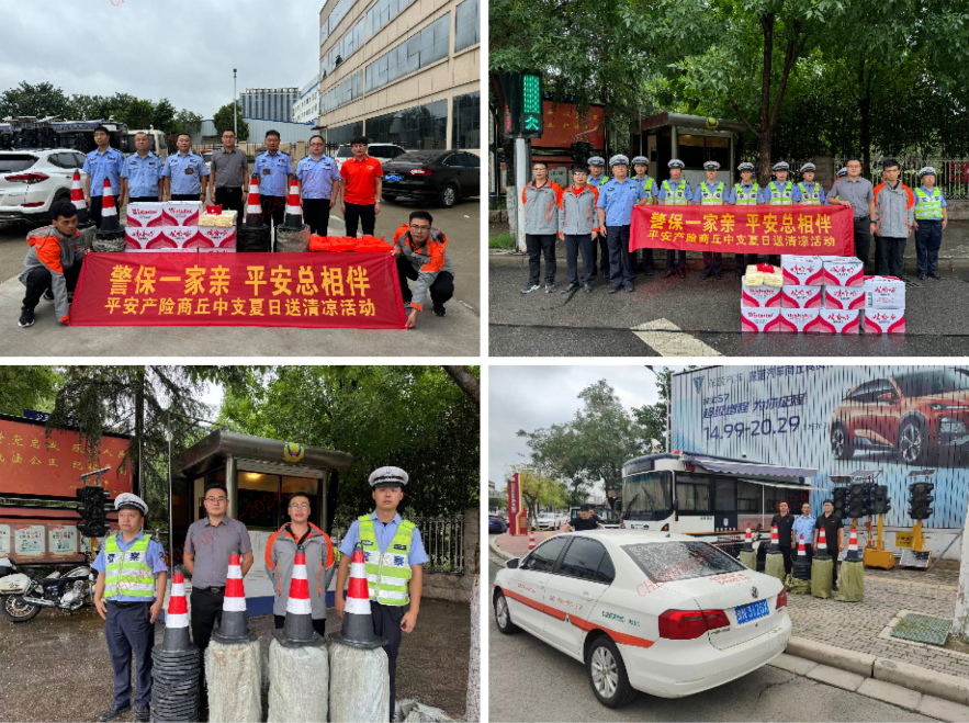 7月7日至7月9日,平安产险商丘中支副总经理李志远带领平安守护者前往各交警执勤点,为交警送上清凉饮品,以示感谢与敬意。同时随着雨季来临,平安产险商丘中支联合交警,共同制定了一系列应对雨季挑战的措施和预案,积极为防灾减损做准备。