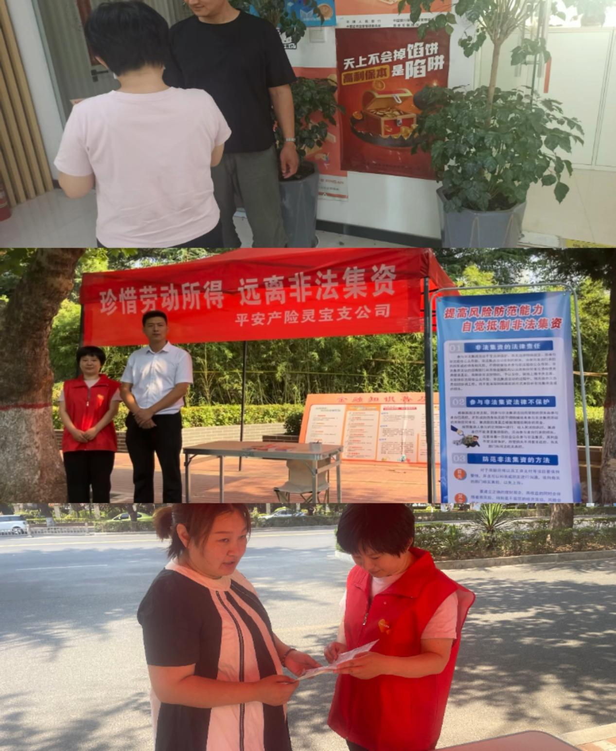 防范非法金融活动是一项常态化工作。平安产险灵宝支公司将通过营业大厅电视播放警示视频、地摊宣传、”五进入“等多途径助力增强公众风险防范意识与能力,为营造和谐、健康、安全的金融环境贡献平安力量。