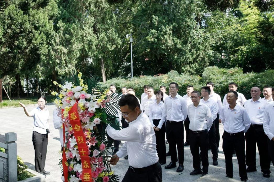 在鄂豫皖苏区首府烈士陵园,全体党员向革命烈士纪念碑敬献花篮,向革命先烈鞠躬默哀,表达对先烈们的深切缅怀和崇高敬意。面对鲜红的党旗,全体党员庄严宣誓,重温入党誓词,铿锵有力的誓言在烈士陵园上空回荡,表达了党员们对党忠诚、为共产主义事业奋斗终身的坚定决心。