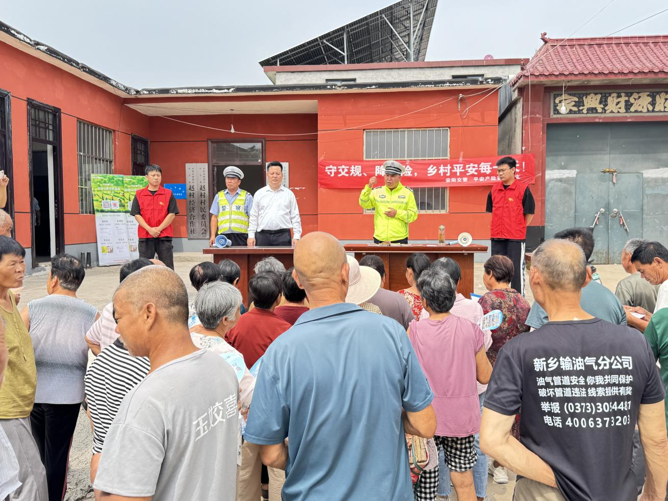 为切实落实风险减量服务工作部署,积极响应“乡风100党建共建行动”,7月16日,平安产险安阳中心支公司携手安阳交警前往殷都区安丰乡赵村开展以“守交规·降风险·乡村平安每一天”为主题的道路交通风险减量宣传活动。