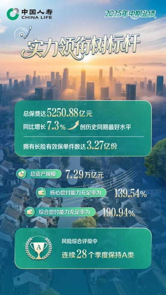 2025年上半年,中国人寿坚持高质量发展主题,积极布局应对市场变化,大力推动变革转型,业务发展顺势而上,交出了稳中有进、进中提质、量质齐升、效速兼取的优异答卷。