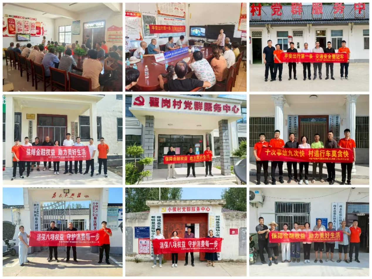 平安产险周口中心支公司积极履行社会责任,在乡村地区大力开展交通安全与金融消费者权益保护教育宣传活动。继项城和沈丘成功举办后,8月19日到8月29日,平安产险周口中心支公司相继在商水、西华、太康等地开展了七场宣传活动,将宣传活动覆盖每一个县域,旨在增强乡村居民的道路安全意识,普及消费者八项权益与防范金融诈骗等相关知识。