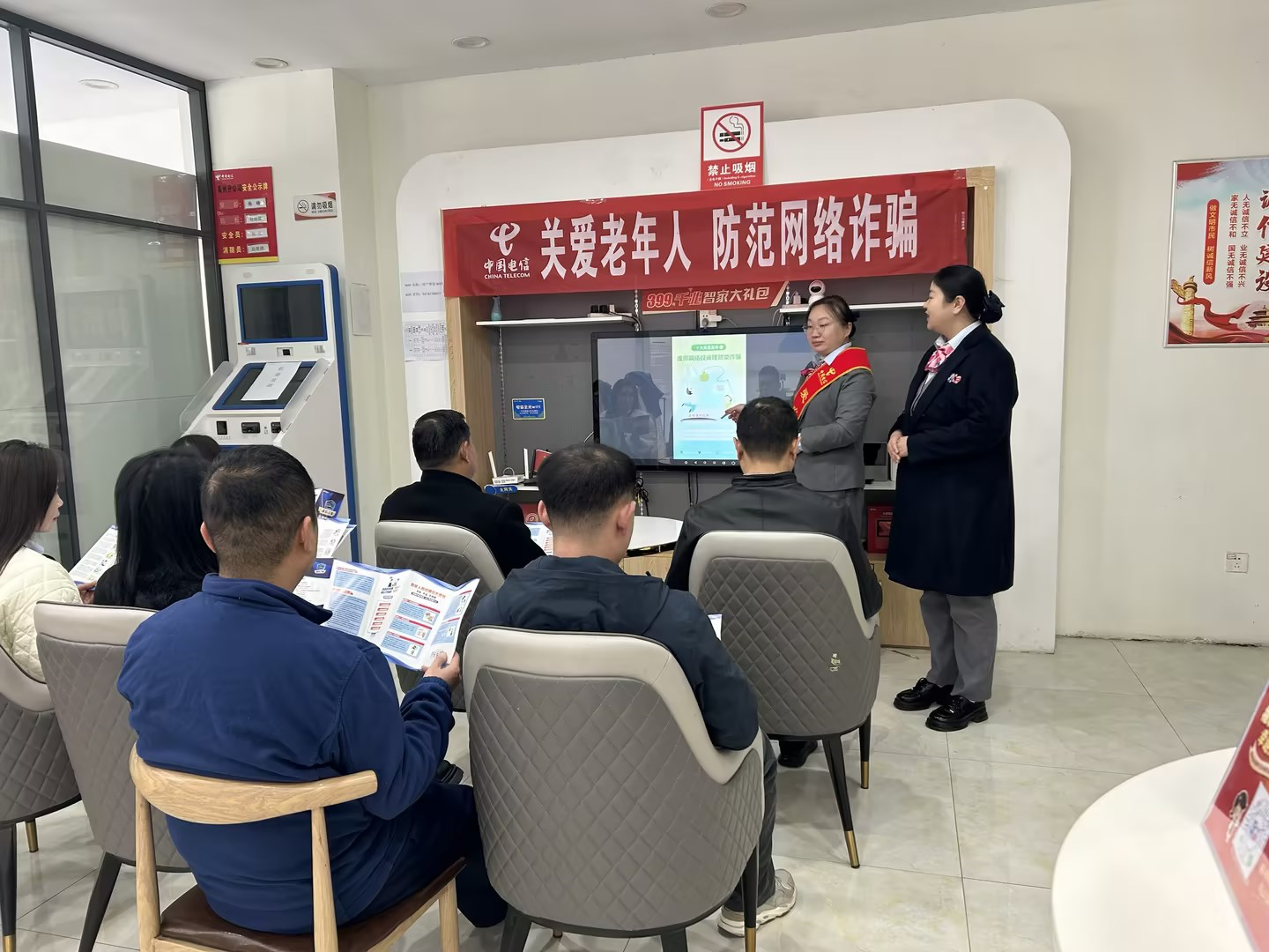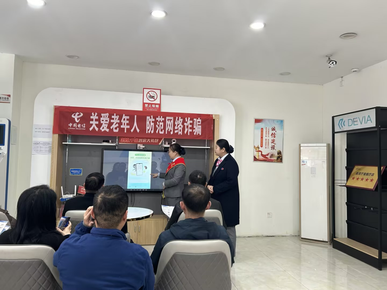 当今社会信息发达,电话网络诈骗案件频发,手段多样,给受害者造成了巨大的经济损失和精神伤害。为了增强广大民众的防骗意识,2024年11月20日,许昌电信组织禹州钧州大街营业厅发挥自身优势,在营业厅举办了“反诈微课堂”主题宣讲活动。