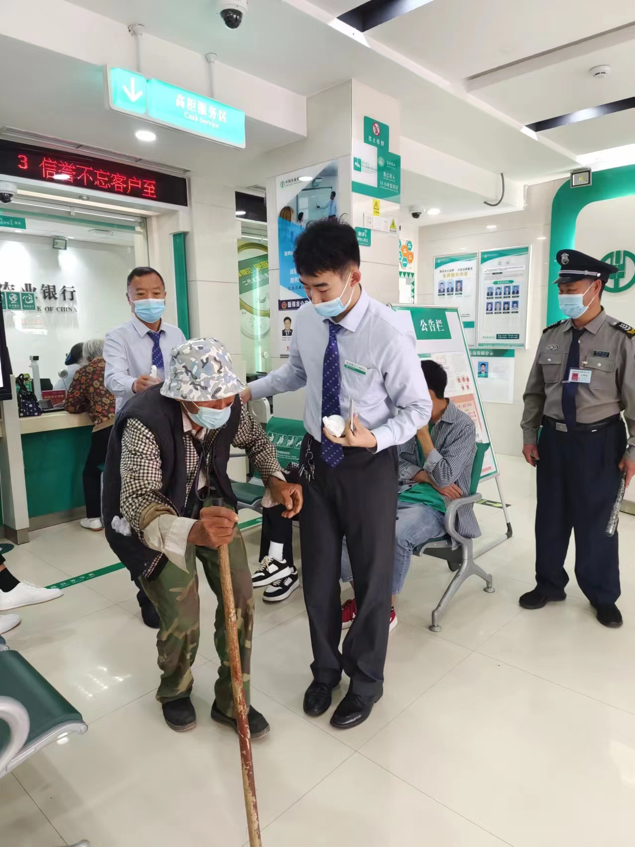 暖心浓情为客户。日前,一位年近九旬的老人拄着拐杖,手拿农行活期一本通,走到网点门口。客服经理秦烁冉正在办理业务过程中,见此情景,赶忙停下手头工作,向前询问老人有什么业务需求,并搀扶着老人到柜台办理取款业务。由于老人高龄,听力退化,客服经理秦烁冉全程陪同协同老人顺利办理该笔业务。老人办完业务后,对这个年轻的小伙子竖起了大拇指。