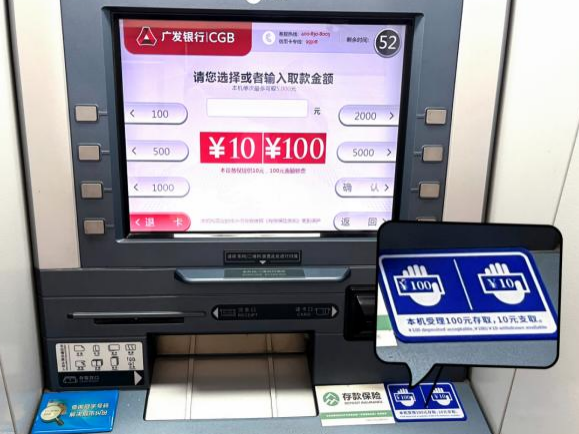 升级改造自助设备,增加零钞取现功能。为完善自助设备小面额取现功能,广发银行郑州分行第一时间组织对部分网点自助设备进行了升级改造。截至5月22日,郑州市、安阳市、新乡市、焦作市可提取10元零钞的自助设备共4台,均已在显著位置张贴相关标识。