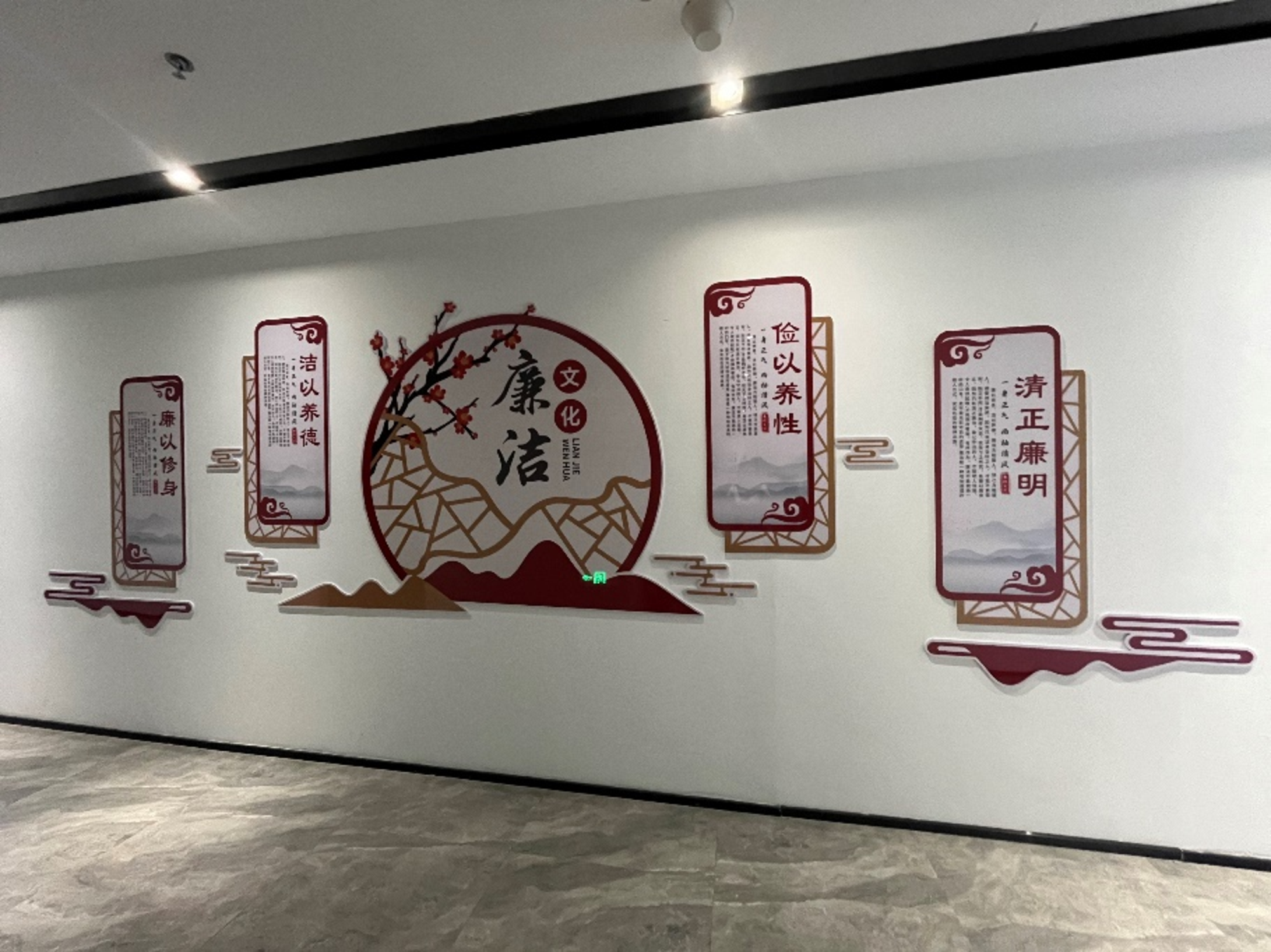 清廉文化墙将清廉文化建设等内容生动呈现,清廉文化墙的建成不仅美化了职场办公环境,还营造了浓厚的清廉文化宣传氛围,让党员干部及员工在潜移默化中受到警示和教育,使廉洁文化入眼、入脑、入心,从而达到以文育廉,潜移默化,润物无声的思想渗透。