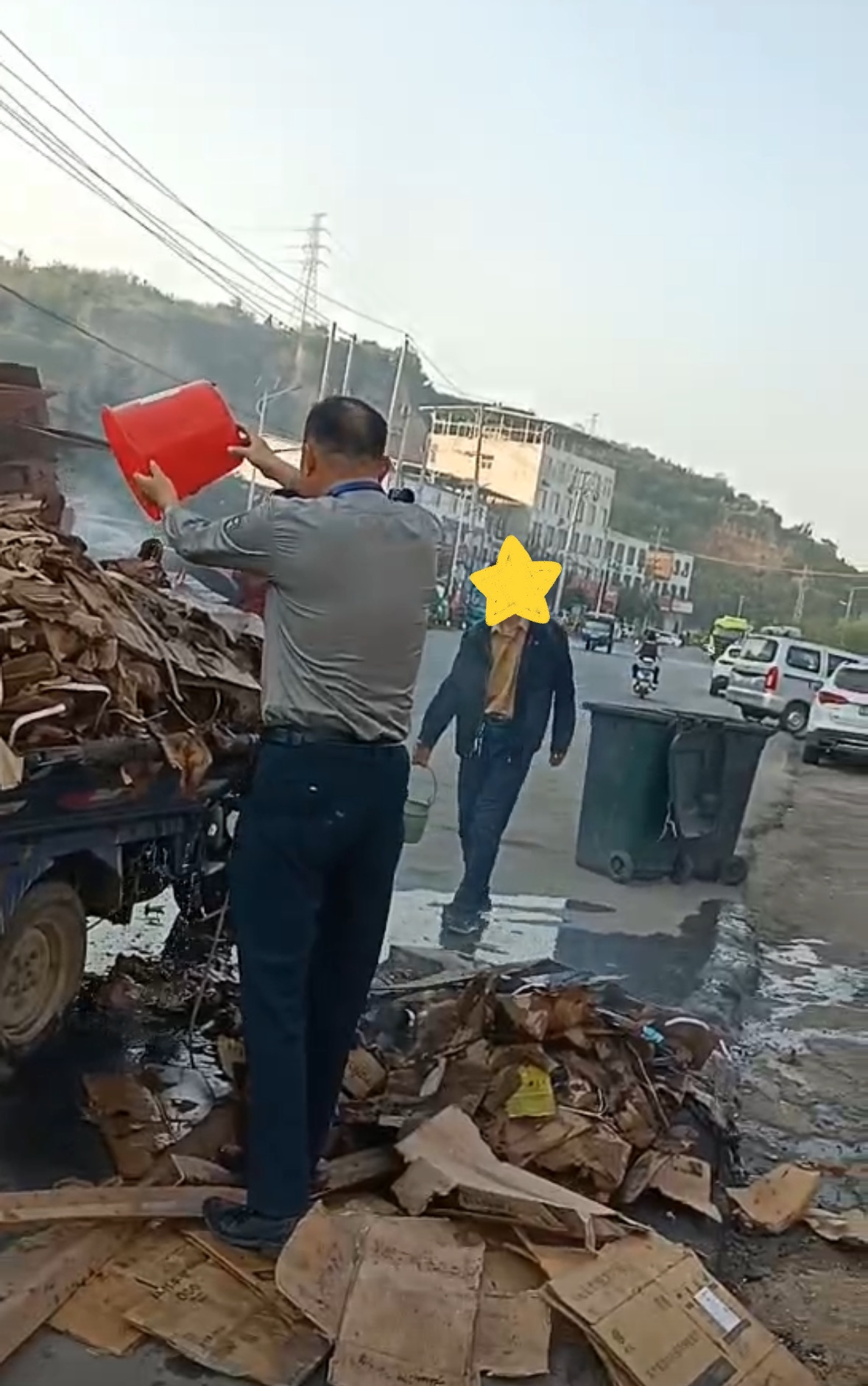 王经理也赶忙前去帮忙,“非常感谢农行同志帮忙啊,好不容易积攒了一车纸箱去卖钱,这眼看着起火了,要不是两位师傅帮忙,这一车纸箱也报废了”,王经理刚到事故发生地,便看到一位大叔激动地说着,原来是一辆拉满纸箱的三轮车,不知为何起火,风速还加剧了火势蔓延,幸得两位师傅反应灵敏,且行动之快,将危险遏制在了萌芽中。