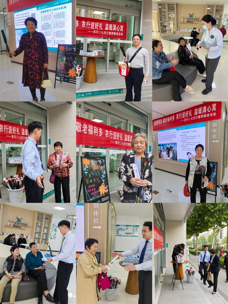 重阳佳节一直是中国的传统爱老敬老节日。二七营业室借助节日在网点和爱馨养老院为老人送温暖送祝福,老人们的脸上绽放出了灿烂的笑容。一份份精心准备的慰问品,承载着银行对老人们的深深关怀。网点特别是对于上了年纪的环卫工人,更是热情邀请他们到网点小憩一会,同时送上祝福。活动之余,网点人员还为老人们开展金融知识宣讲,深入浅出地讲解如何防范金融诈骗、正确使用银行卡等知识,提高老人们的金融安全意识。耐心解答老人们关于养老金领取、存款利率等问题,让他们对自己的财务状况更加放心。
