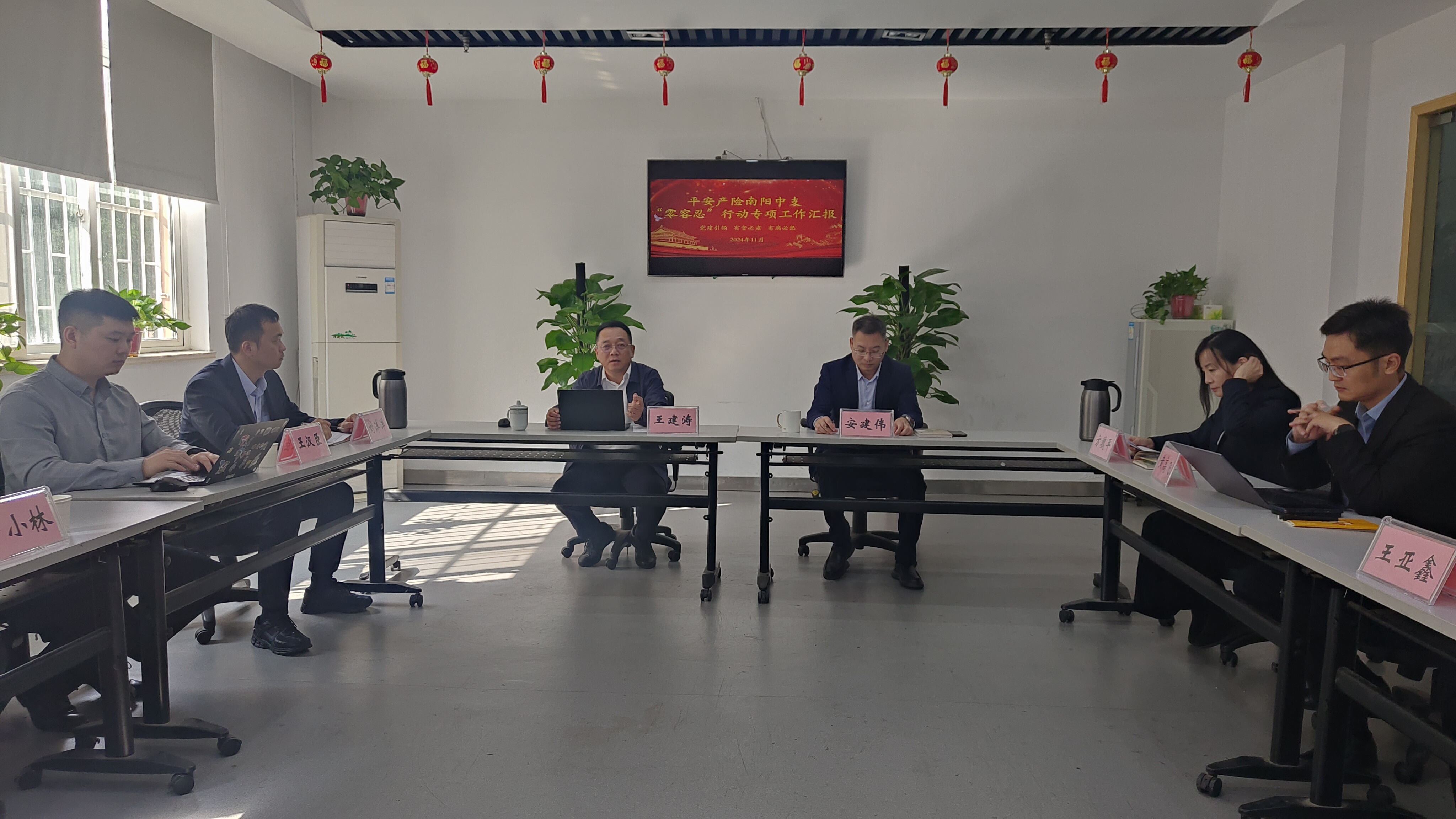 为落实全面从严治党和反腐败斗争工作相关部署及要求,确保公司各部门、机构合规稳健经营,近日,平安产险河南分公司班子成员王建涛带队,赴南阳中心支公司开展“零容忍”督导巡察工作。