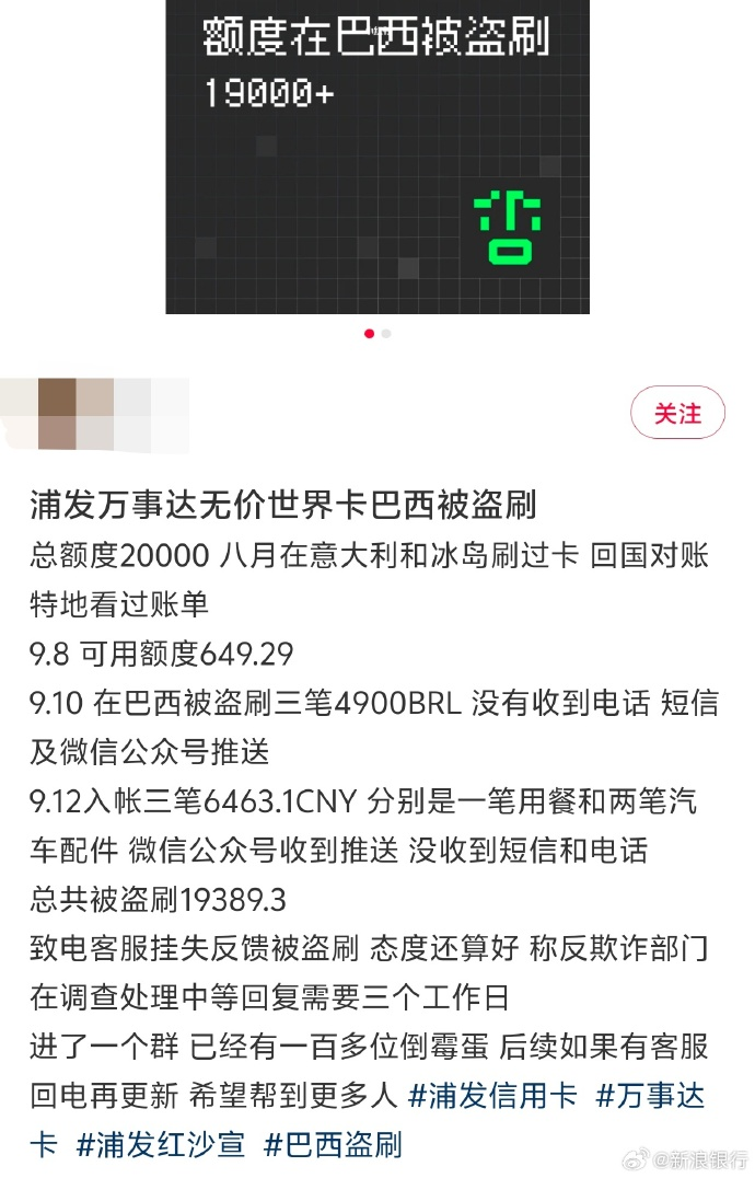 近期多个社交平台的用户表示,自己的浦发银行万事达卡用户被盗刷,且未收到电话、短信等形式的提醒。相关交易大多发生在持卡人不知情、亦无境外交易行为的情况下,事件引发市场对支付安全的担忧。